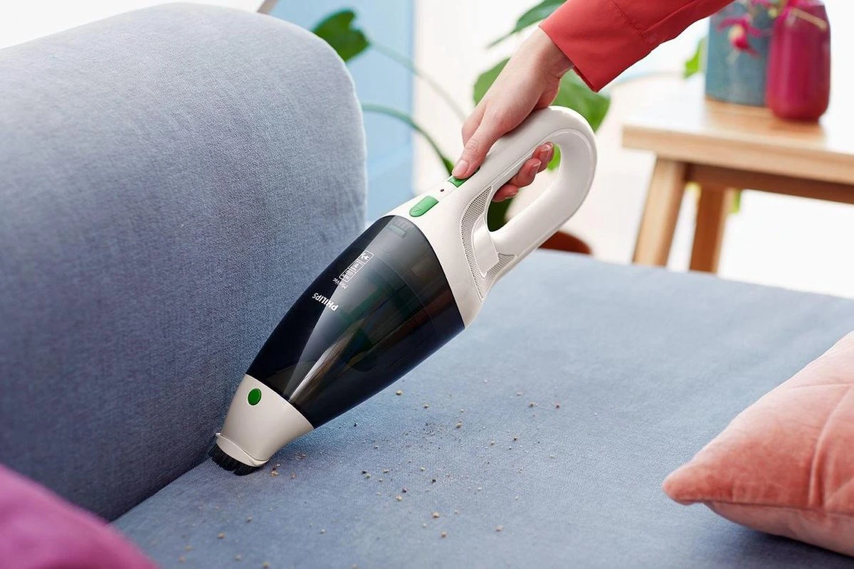 De Philips Mini Vac heeft een gebogen handvat waardoor deze perfect in de hand ligt en u de Mini Vac precies zo kunt vasthouden als u wilt.