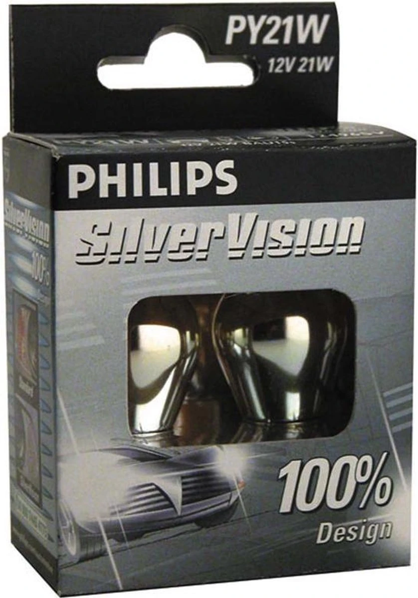 100% Design en Performance. Koplampen worden steeds belangrijker in de tuning scene, daarom komt Philips met deze SilverVision knipperlichten om aan de steeds groeiende vraag naar zilveren lampen te voldoen. Als je lampen uit zijn, zie je een 100% gestylde zilveren lamp geïntegreerd in jouw koplampunit. Wanneer de verlichting aan wordt geschakeld, kun je weer rekenen op de alom bekende kwaliteit en lichtopbrengst van alle Philips Automotive lampen.
