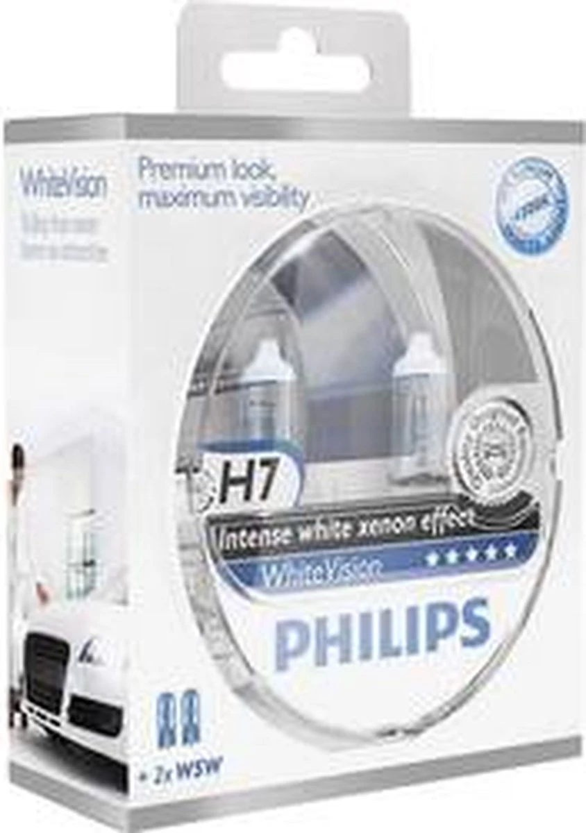 Philips White Vision H7 55W/12V Halogeen Lampen, set à 2 stuks
